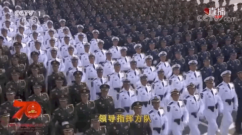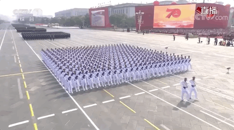今天,人民子弟兵整齐划一地走过天安门广场,接受党和人民的检阅;