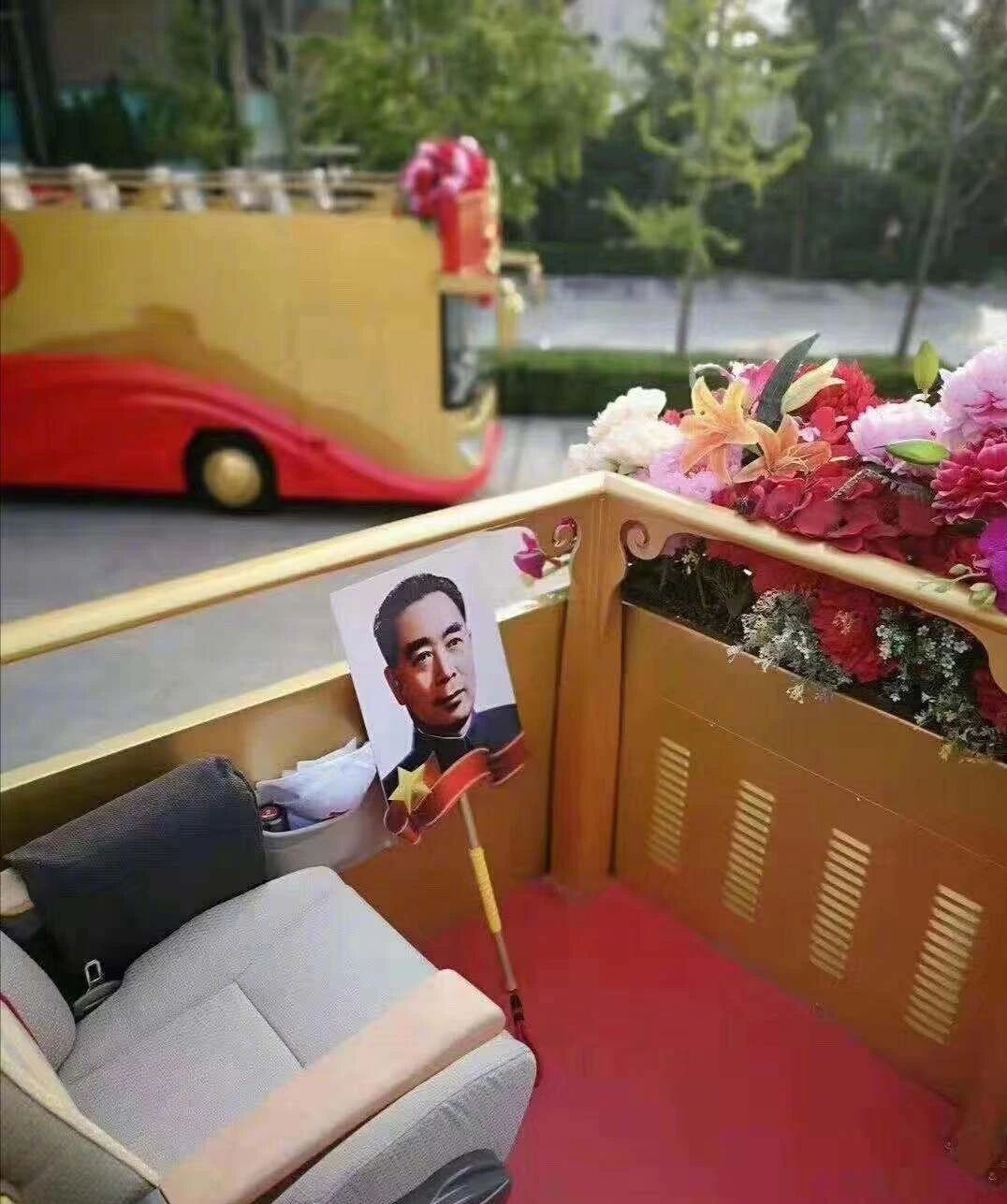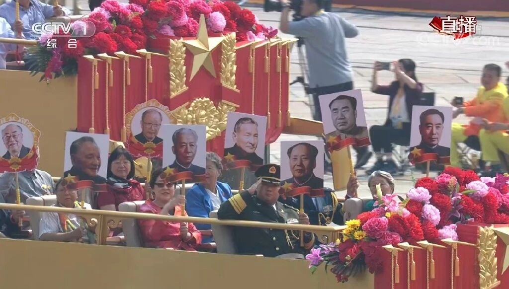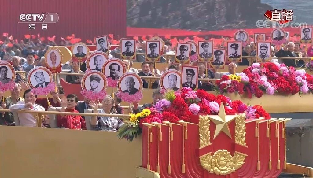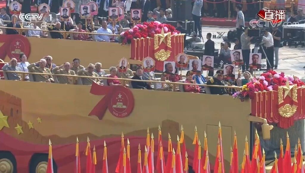 致敬方阵由21辆礼宾车组成,礼宾车上是中华人民共和国开创者、建设者的亲属代表们。