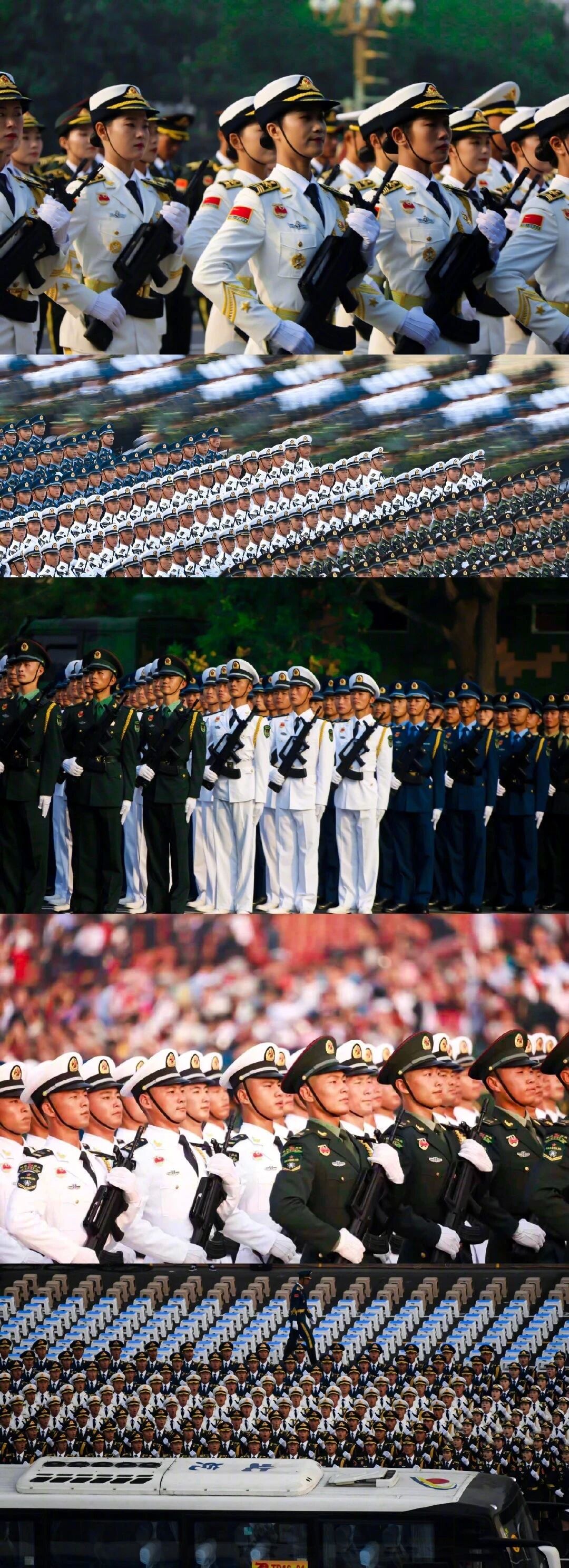 还有联勤保障部队方队、武警部队方队、英姿飒爽的女兵方队、院校科研方队、文职人员方队、维和部队方队!