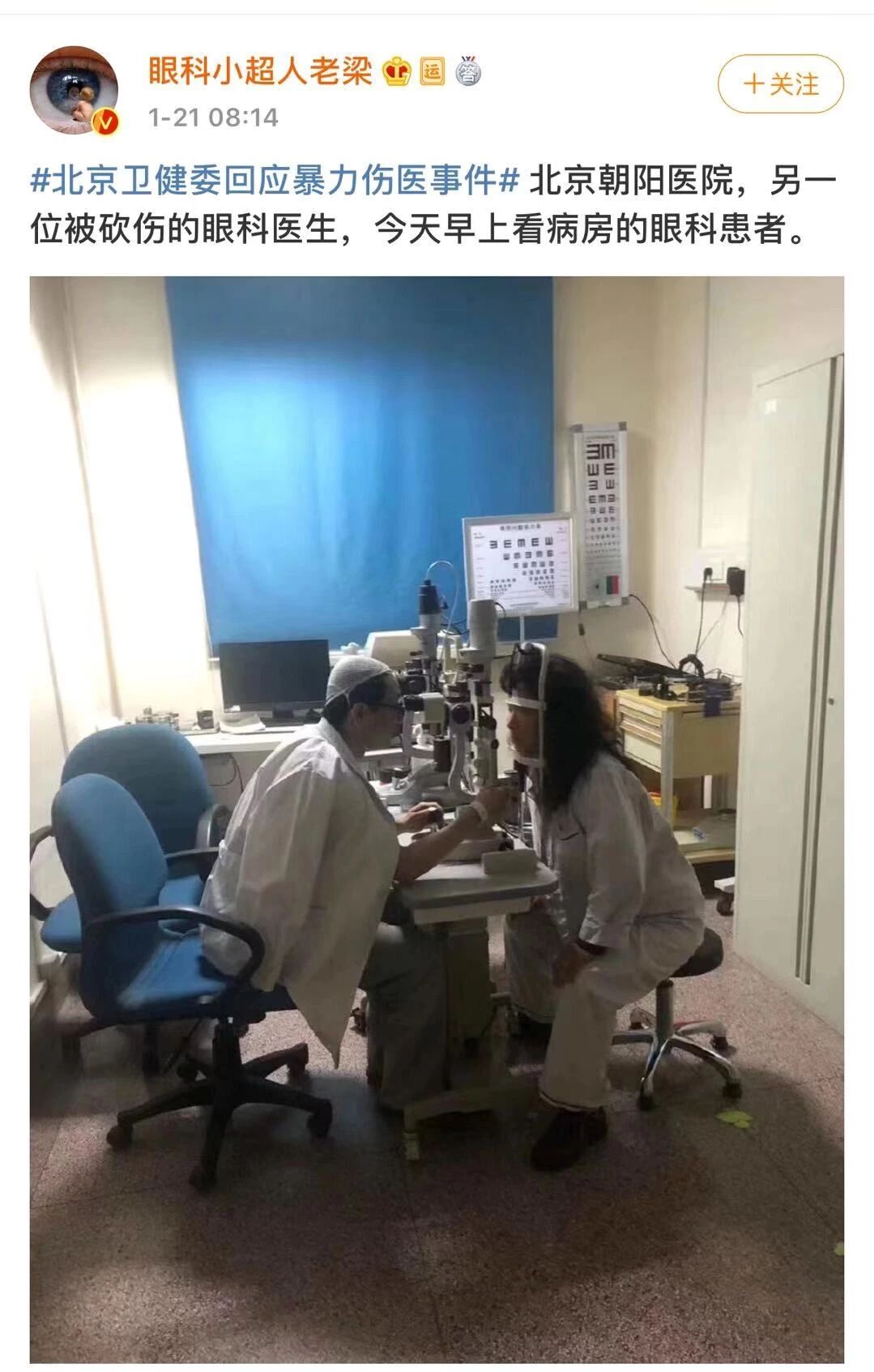 1月20日,北京朝阳医院眼科的主任医师陶勇医生,被无法接受术后并发症的病人手持菜刀冲进医院,从七楼追砍至六楼身中数刀,双手合头部多处被砍伤,左手、前臂肌腱断裂,神经受损。