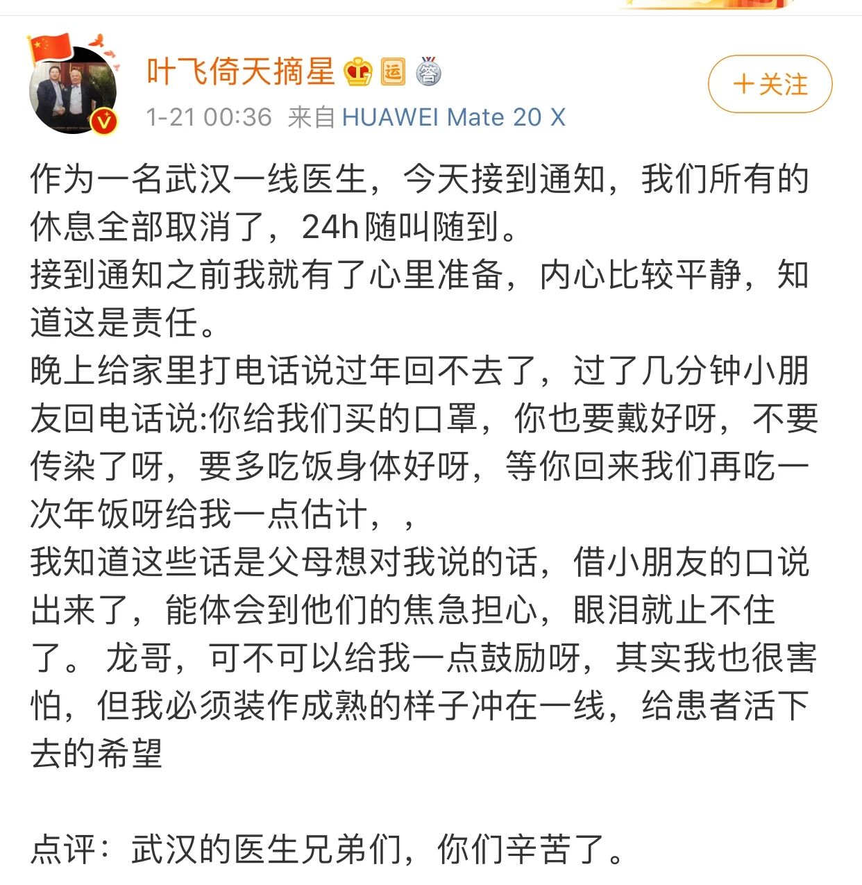 前两天一名武汉的医生在微博上分享近况:接到了休息全部取消的通知,要求24h随叫随到。