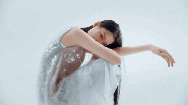“7号色”在王新宇眼中,就像聚光灯下水光淋漓的高定礼服。随着台步的摇曳流动,微光反射产生抒情的光效应。作为模特置身其中,是她离光与梦想最近的时刻。