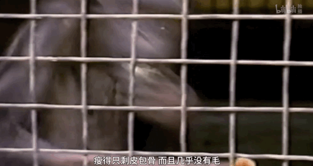 在实验基地中,看到困在笼中孤零零的一只黑猩猩,珍为它的境遇流泪