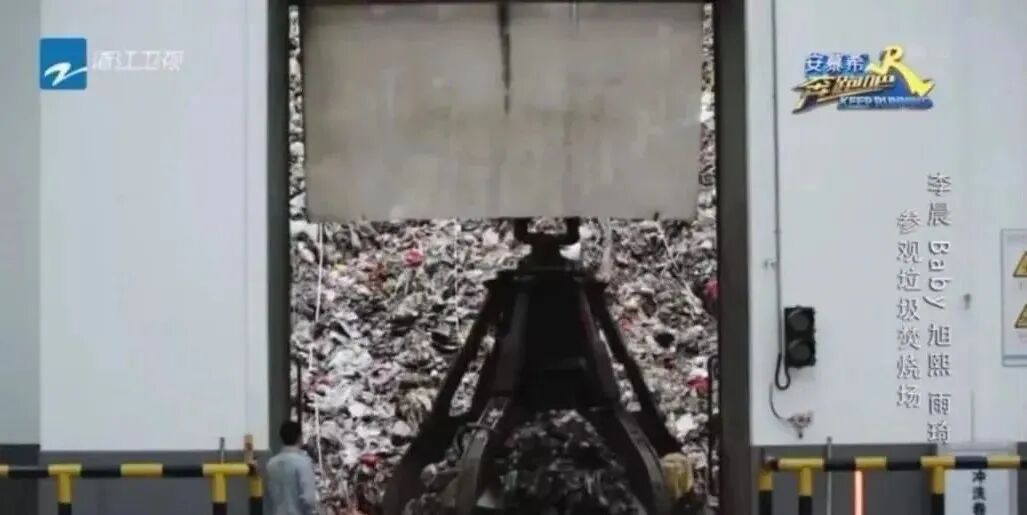 李晨、baby、黄旭熙、宋雨琦则是被分到去参观垃圾焚烧厂,当大门缓缓打开,让人有种看了恐怖片的感觉,空旷的大坑堆满了垃圾,不断运输垃圾的是一个一把可以抓起9吨垃圾的吊机爪。