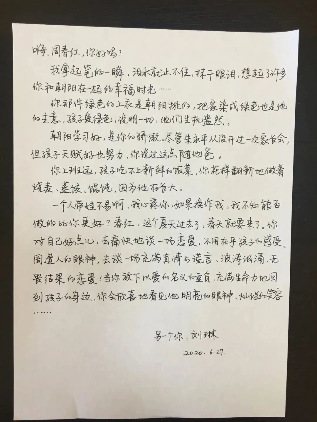 周春红的扮演者刘琳给剧中的自己手写了一封信,看得不少观众红了眼眶。信并不是很长,但字里行间,流露出对“周春红”的心疼。