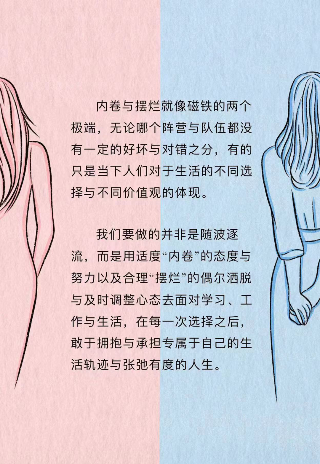 可能是因为“万物皆可卷”“今天搬砖不狠,明天地位不稳”的理念所造就的你追我赶的局面已经让一些人被贩卖焦虑,于是乎他们开始反抗,突围内卷怪圈,开始了反向内卷,与其被卷死不如直接就地躺平,慢慢演变成了破罐破摔的摆烂。