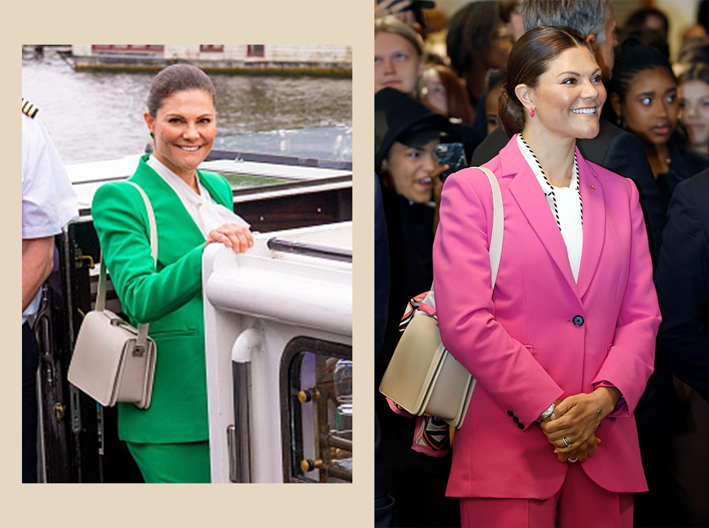 包包的部分同样走“平民”路线,完全看不到Hermes、Chanel、Dior这些高奢贵牌,大多出自瑞典及北欧品牌。价格基本在两三百欧元之间,偶尔买上千欧的手袋,也会重复穿搭多次。她们的衣着既符合王室的大方得体,又能巧妙运用亮眼的色彩与印花,在时髦和端庄之间拿捏得恰到好处,也是适合普通人的“职场穿衣模板”。