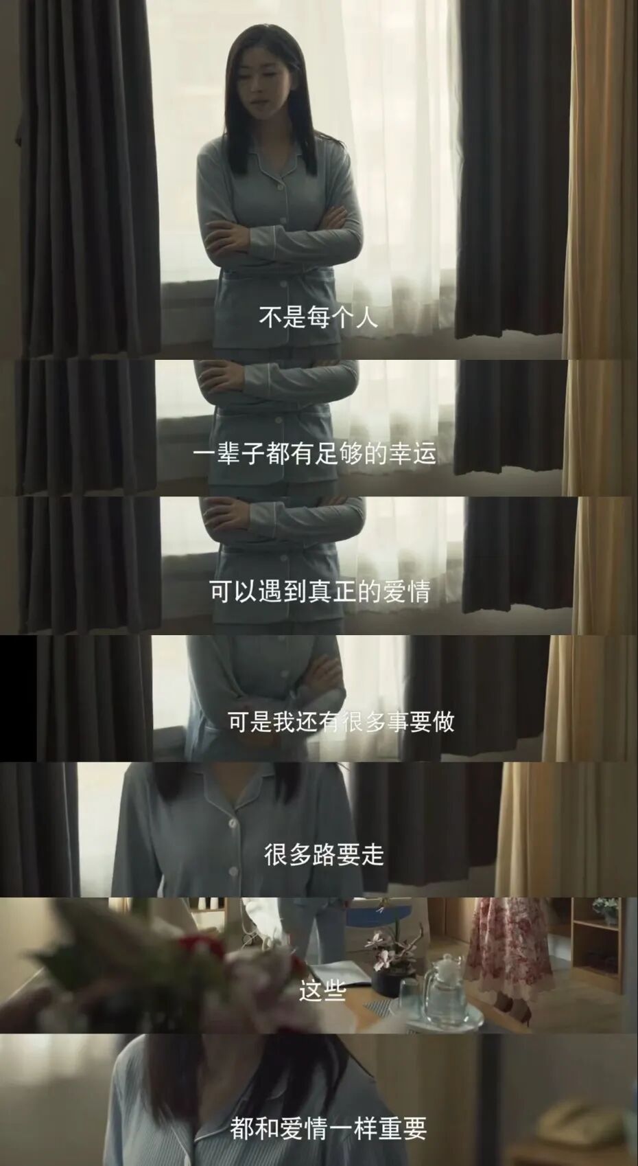 在剧中的感情关系里,男性不再居于分配资源的主体地位,而是服务于玫瑰的成长。一头扎进爱情里燃烧真心是她,品尝痛苦看清自我转身离开也是她。爱情不是捷径,命运的垂青也都在暗中标好价格,玫瑰的自我成长,是不再以爱人为信仰,而以自爱为根本。