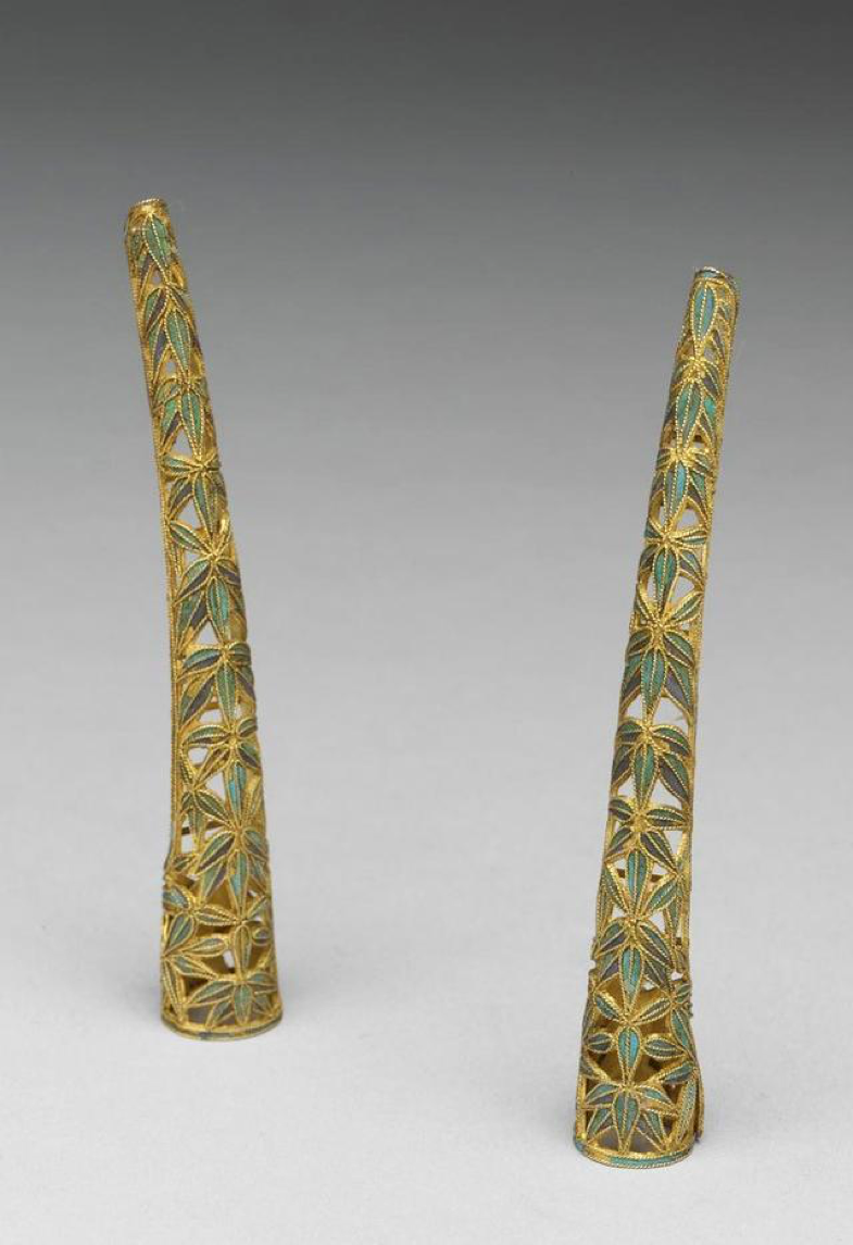 清 点翠竹叶镂空金指甲套 台北故宫博物院藏