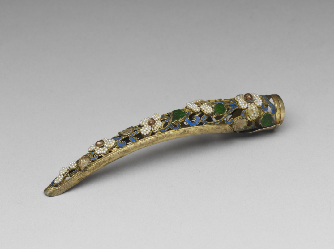 清 鏤空點翠鑲珠冰梅紋指甲套