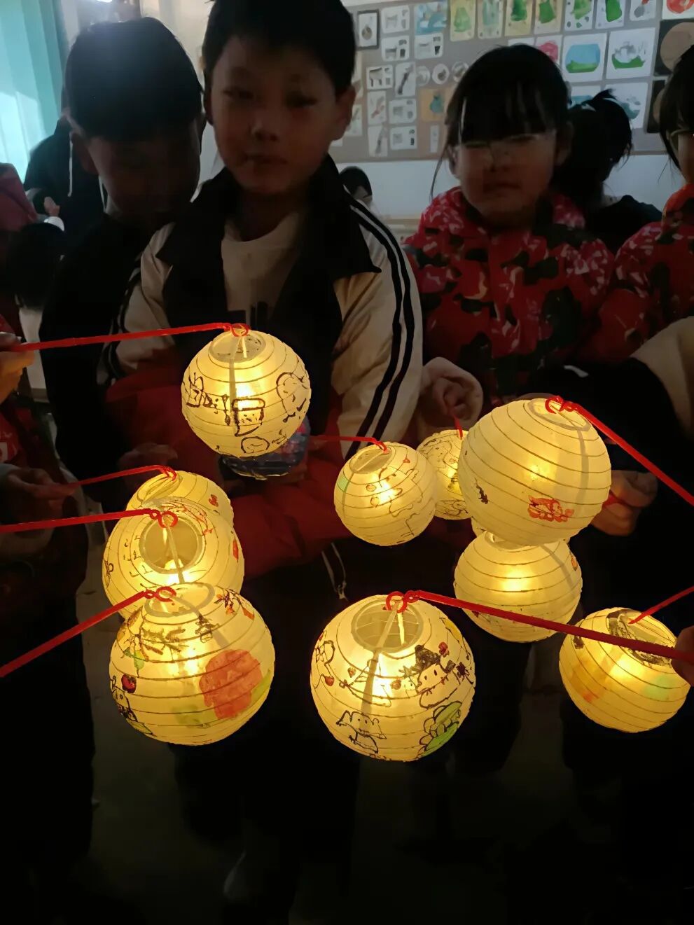 ●一团团微光簇拥照亮了孩子们的笑脸