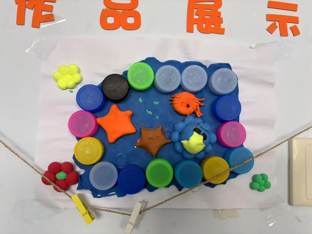 但美育的力量远不止于此,它更在于为每个孩子找到表达的出口和自信的支点。五年级的小宇性格内向,平时在班上很少主动发言。然而,在一次手工课上,他默默地用彩泥和收集来的瓶盖,创造了一个令人惊艳的“海底世界”:形态奇异的海洋生物、摇曳的海草、发光的珊瑚礁,这个充满奇幻色彩的作品,与他安静的外表形成鲜明反差,却真实地展露了他内心的丰盈世界。
