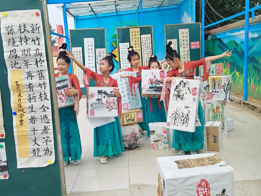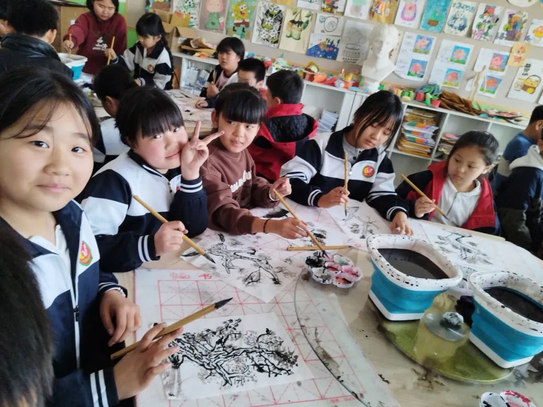 只能在担任语文老师的间隙中,偶尔抽时间用最简单的材料带孩子们试试白描、临摹,又或者是在语文课上将诗歌、古文用画的形式呈现出来,让孩子们理解得更快、学起来也更有趣一些。