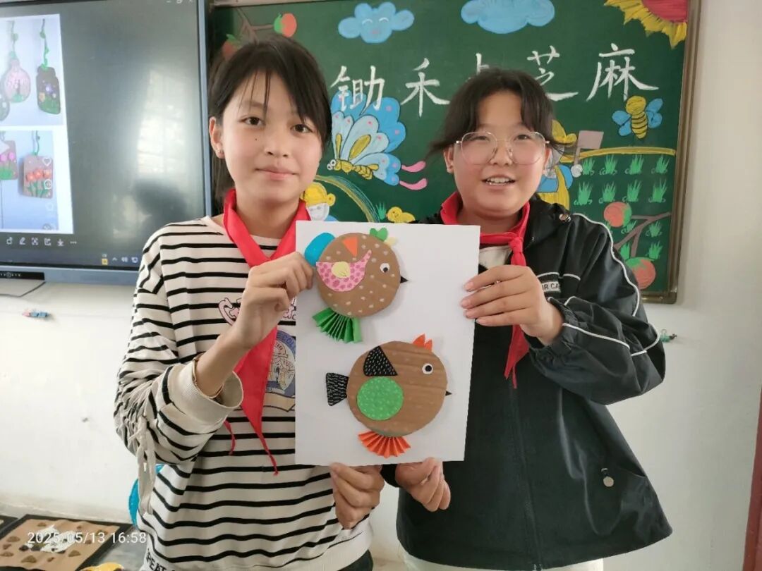 “我们五年级班上的一个男孩,平时在文化课上表现平平,他竟然精心准备了两幅画,并且把两幅画做了正反面拼接、用绳子系了起来,别出心裁地做成了一幅可以悬挂展示的双面画!”