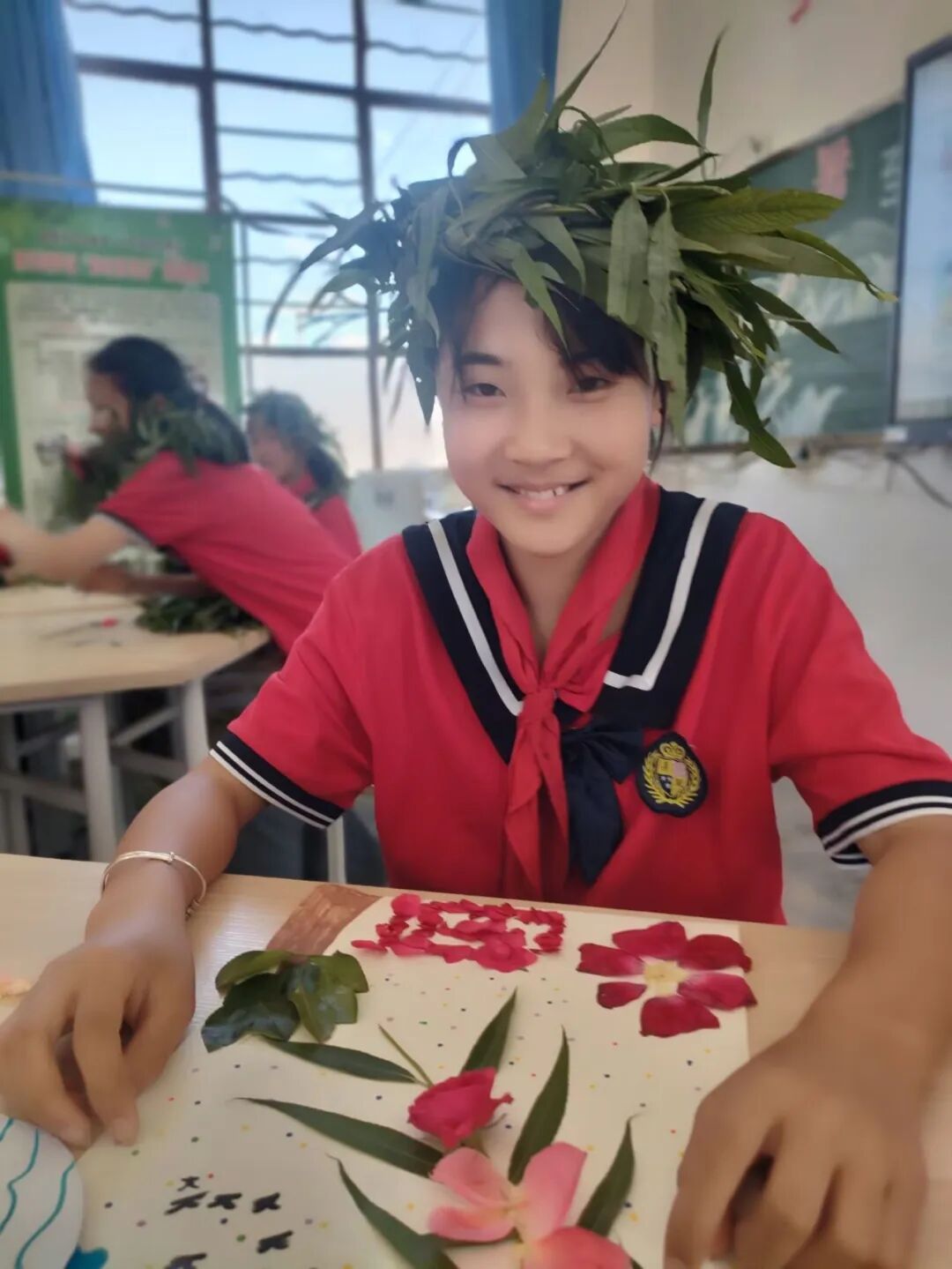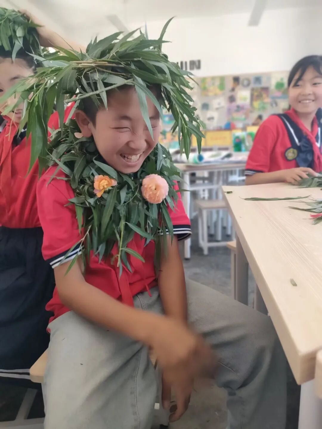 “为了准备一次关于二十四节气的美育活动,我在周五放学前给孩子们布置了一份特别的作业,让大家用树枝树叶来编织一顶草帽、拼贴成不同的图画。”仅仅两天的时间,尝试一次从未做过的美育实践,王老师心里也没有把握,“这么难,孩子们能完成吗?”