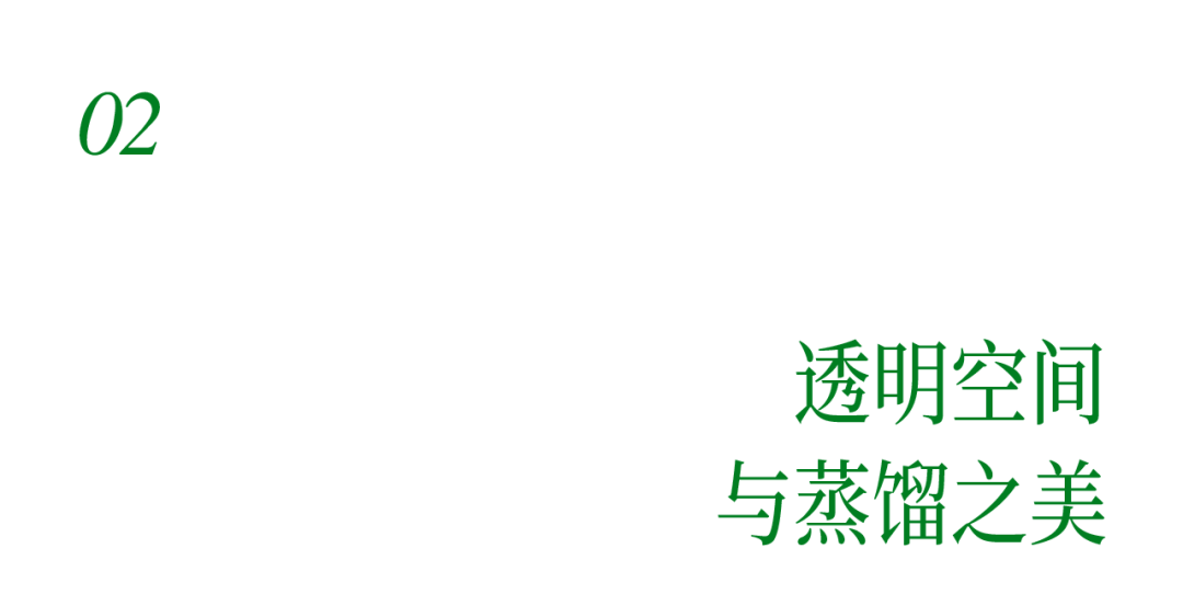 再如“超小型壶式蒸馏器”这个与制酒技术强关联的支柱,被放置于建筑中心轴线区域,由三组铜壶蒸馏器呈现出来。空间中没有设隔断,天光与蒸汽共同形成朦胧气场,仿佛每一壶蒸馏都是公开的演出。在这个透明之境中,所谓“最佳酒心”——也就是整个蒸馏过程中最纯净、最优雅的中段酒液——仿佛也不再只是液体判断,而成为你亲眼所见的“节制姿态”:一条清澈而坚定的线索,从设备中缓缓流出,藏进橡木桶中,再也不被打扰。
