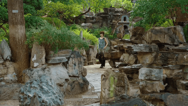 姚安娜漫步于恭王府中,感受历史的痕迹。