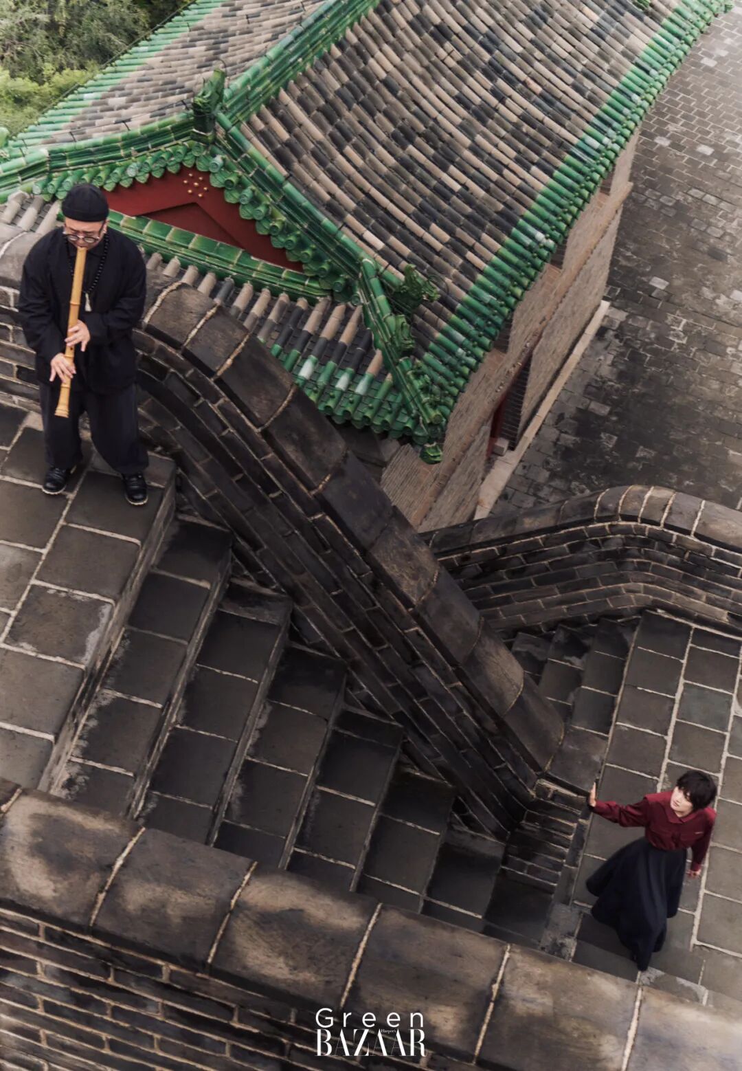日落时分,熙熙攘攘的游客散去。姚安娜在烽火楼上远望,耳畔尺八的演奏声悠长而空灵。“TASHI告诉我,其中一首曲子叫作《虚铃》,是现存最古老的尺八曲。讲的是唐代禅师沿街而行,摇铃化缘,也因此度化众生的情景。我听着尺八的声音,望着远处山峦升起的一点薄雾,一瞬间觉得自己好像穿越了,回到古代,在长城上眺望远方,又在远方眺望故乡。”