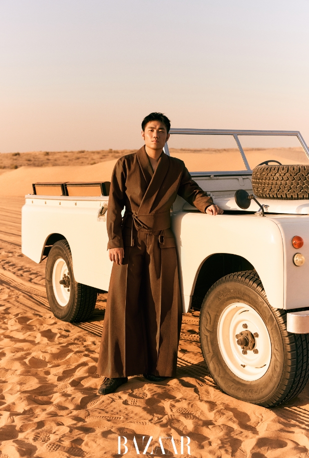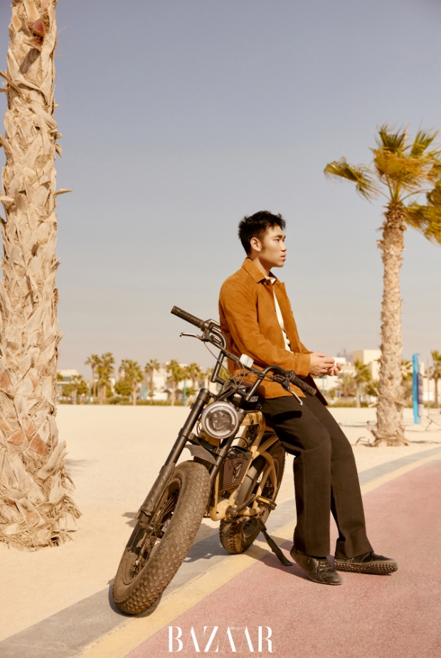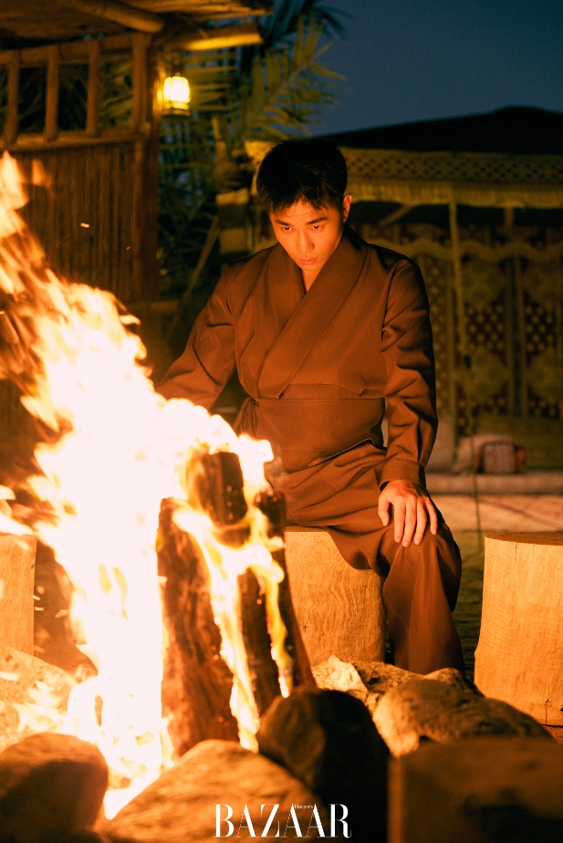 跟《时尚芭莎》合作的印象让我挺深刻的,由衷地敬佩各位摄影师和服装老师。首先,非常感谢各位老师。这是我第一次在镜头前凹造型,应该挺有意义的。脱口秀演员对第一次体验的事物都会特别上心。第一次在镜头前耍帅,对我来说也是一个挑战。