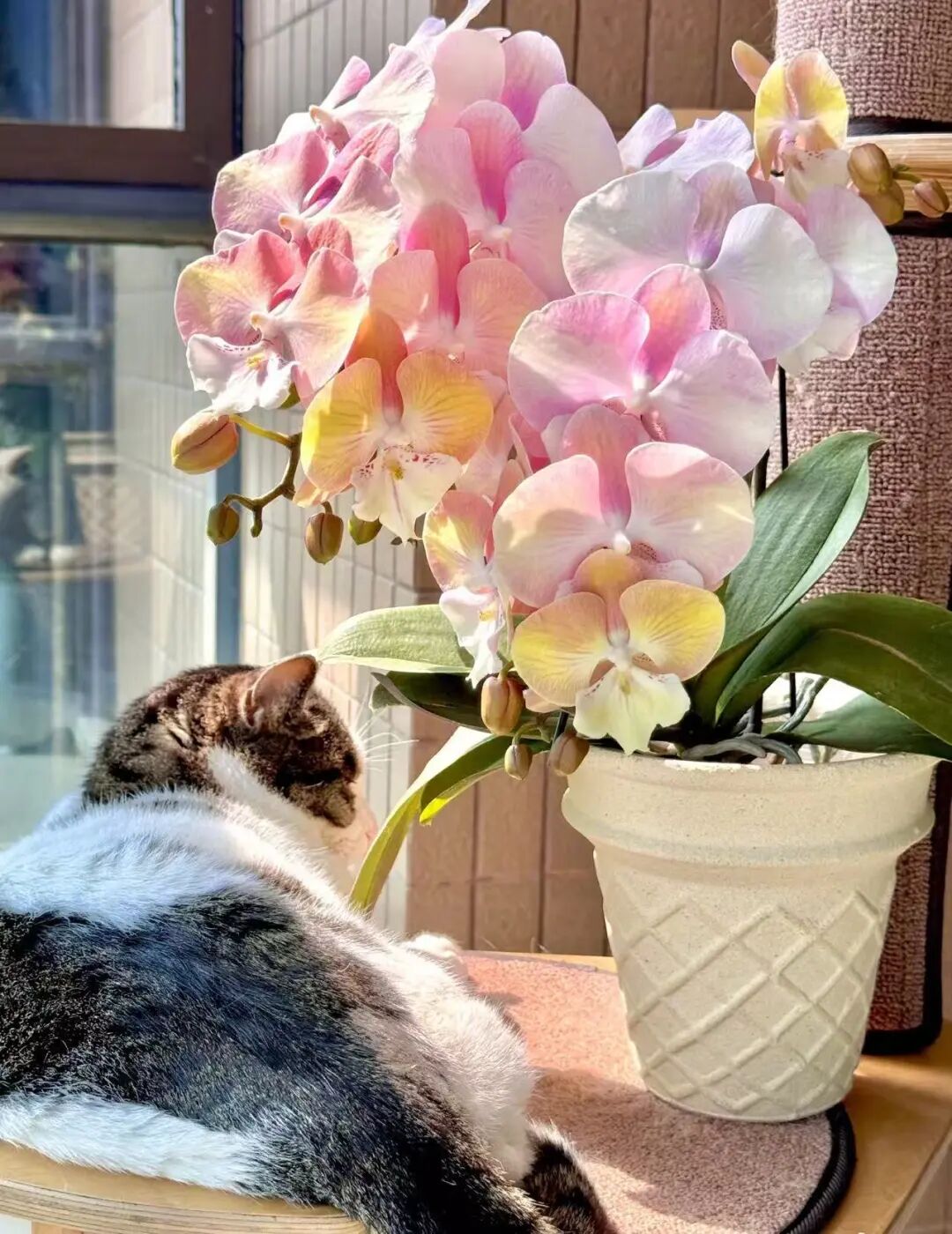 但去年春天,当蝴蝶兰盛放时,她的猫麻酱却永远离开了,这让她对“美”的感知也变得复杂而深邃:“春天是五彩斑斓的,但也会让我心碎。”她由此懂得,真正的绽放,从来不是单纯的、轻盈的喜悦,而是夹杂着向死而生的力量,其底蕴往往沉着细碎的悲伤。但生命最蓬勃的姿态,恰是在认清并接纳这全部之后,依然选择热烈地打开自己。