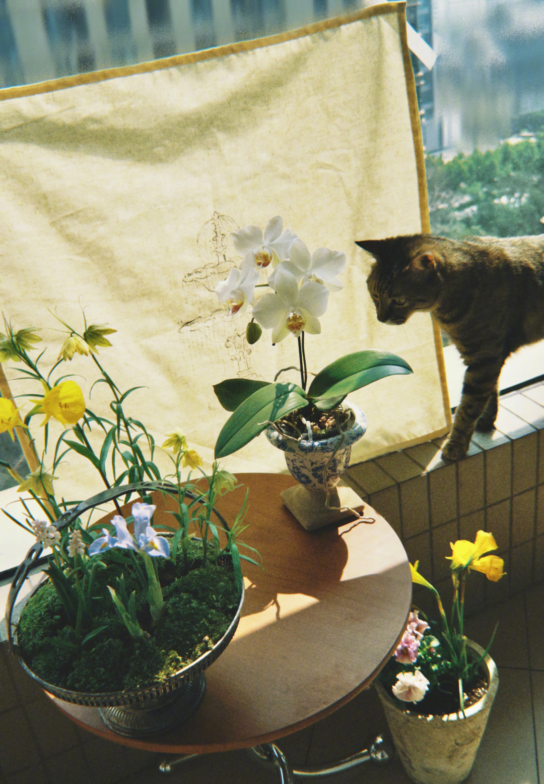 她的阳台就犹如一座花园,围裙水仙、日出风信子、细叶鸢尾……兀自盛开。天气好的时候,她伏在阳光下,安静地观察这个幽微的世界,透过不会言语的植物,感受季节交替。而春天,对她而言,既带来新生也承载别离,正如那株死而复生的蝴蝶兰,在生命的洋流中穿山涉水,如一种挺拔生长的意象,始终存在于她身上。