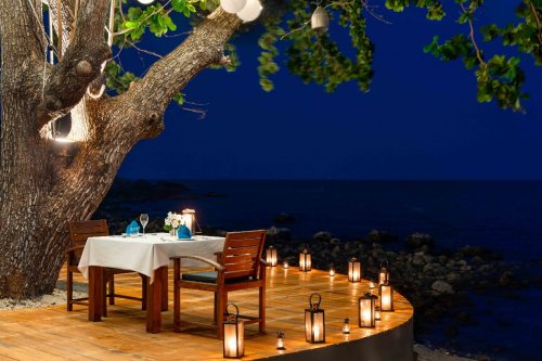 塞伊苏梅别墅酒店 (SAii Koh Samui Villas)则以其独具节奏感的海滩氛围,为情侣打造活力而亲密的情人节体验。酒店的SAii Beach Club是浪漫夜晚的核心场景,海景、音乐与鸡尾酒交织出轻松的友好氛围,而火舞秀与娱乐表演则为夜色增添独特戏剧感。情人节限定的海滨五道式晚宴将在烛光点亮的沙滩餐桌旁呈现,包括香煎扇贝、龙虾浓汤、牛排与提拉米苏,双人售价约人民币649元++;若选择特别浪漫布置,价格为 1,097元++,并附赠节日气泡鸡尾酒。