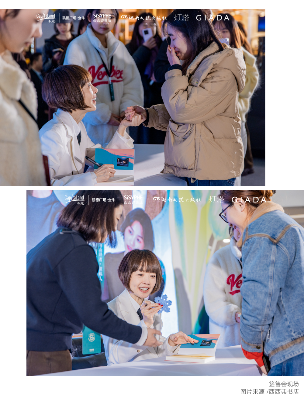 签售环节,几乎每个拿着书、期待见到鲁豫的女孩,都会在鲁豫一笔一画签下名字的时候跟她说说话,哪怕只是当面对她说声感谢——谢谢她一直以来的发声和表达。网上流传的视频记录下一幕幕画面:有的女孩趴在桌前,鲁豫也俯下身去,尽可能地平视对方,一双明亮的大眼睛里,倒映着女孩们的模样、故事、情绪甚至眼泪。