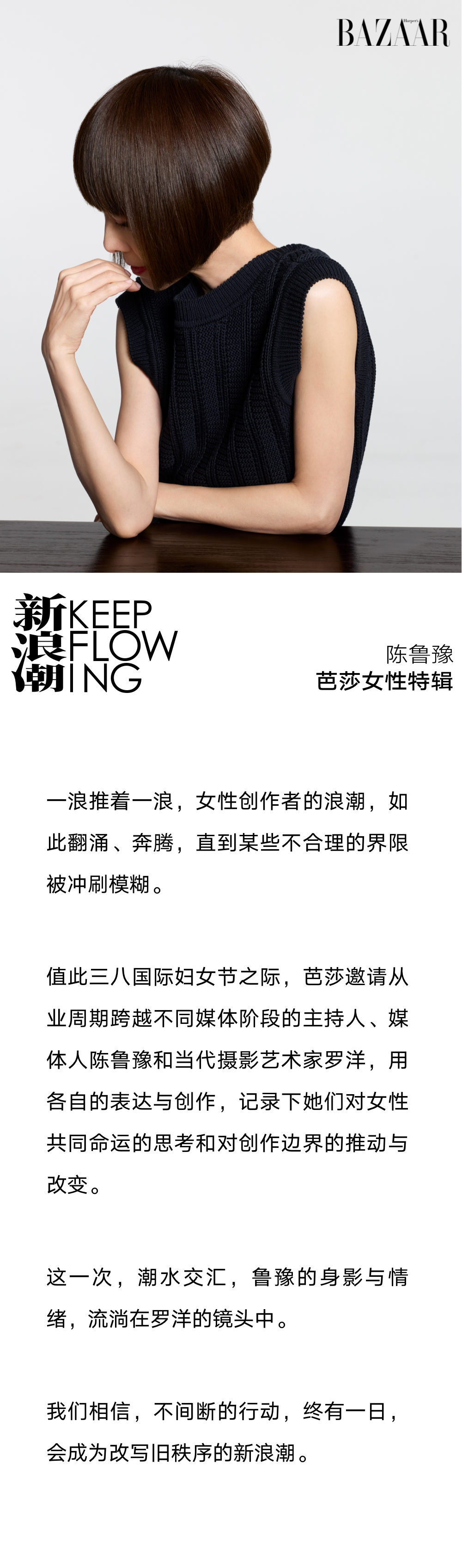 陈鲁豫:我非常开心,她是女性,我也是女性,在她面前,有一些表达我能够更自如地去完成,这是一种身体的本能。本来我就是个不会拍照的人,她会让我变得更放松一点,对我帮助非常大。